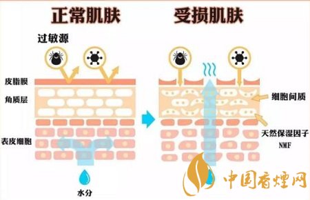 煙草里的“丙酮”,是導(dǎo)致皮膚敏感的罪魁禍?zhǔn)字?。皮膚上的油脂膜既可以阻擋外來過敏原刺激到肌膚;又能防止皮膚內(nèi)的水分被空氣蒸發(fā)。這樣才能構(gòu)建出健康的“肌膚屏障”。