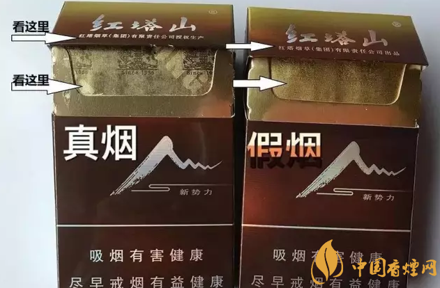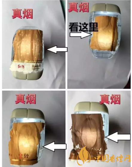 真紅河88的內(nèi)邊框為啞光金色,假煙為光亮金色。