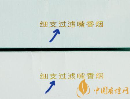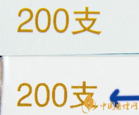 真品卷煙商標紙采用膠印印刷,假冒卷煙多為凹版印刷。真品卷煙字體飽滿,且字體邊緣光滑,假冒卷煙字體偏細,不飽滿,字體邊緣為毛刺狀。