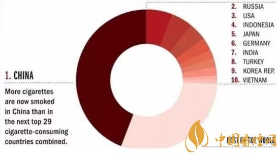中國(guó)是世界上最大的煙草消費(fèi)和生產(chǎn)國(guó),中國(guó)每年的煙草消費(fèi)量相當(dāng)于排名第2-29位的所有國(guó)家煙草消費(fèi)量的總和。全世界每年超過三分之一的煙草是中國(guó)人消費(fèi)的。