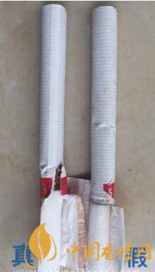 真品卷煙濾嘴棒長(zhǎng)度為27mm;假煙濾嘴棒長(zhǎng)度為23mm。