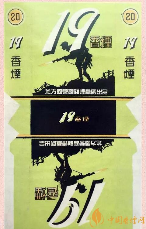 “19”牌卷煙 1932年1月28日,日本欲占領(lǐng)淞滬鐵路防線,不料遇到了奮力抵抗的中國駐軍,該駐軍就是國民黨第19路軍。新中國成立后,為紀(jì)念第一次淞滬抗戰(zhàn)中19路軍的英勇抗敵,寶雞煙草廠出品了“19”牌卷煙。