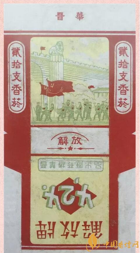 “424”解放牌卷煙 1949年4月24日,中國人民解放軍攻克了太原。太原戰(zhàn)役規(guī)模龐大,戰(zhàn)況慘烈,是中國人民解放軍經(jīng)典的戰(zhàn)役之一。山西晉華卷煙廠為紀(jì)念此日,出品“424”解放牌卷煙。煙標(biāo)上面是在太原首義門前,中國人民解放軍軍隊(duì)敲鑼吹號、勝利凱旋的畫面。