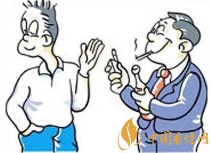 (2)吸煙時(shí),不應(yīng)一直吸到燒手或吸到過濾嘴邊緣;不應(yīng)將煙霧向別人直噴過去;不應(yīng)從鼻孔里往外吐煙;不應(yīng)走著路吸煙;不應(yīng)把煙夾在耳朵上;也不應(yīng)在電扇和空調(diào)的上風(fēng)吸煙。如果對(duì)方不吸煙,而向你讓煙,此時(shí)最好不要吸煙。