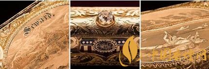 雪茄盒主體由黃金制作,細(xì)節(jié)上包括刻字SEWARD,一顆寶石和美國(guó)國(guó)旗圖案,以及美國(guó)原住民婦女的狩獵場(chǎng)景。一筆最重要的交易,一段歷史就完整的呈現(xiàn)在一個(gè)雪茄盒上了。想要了解更多內(nèi)容請(qǐng)點(diǎn)擊:西班牙代理商推出了中國(guó)豬年高希霸生肖雪茄