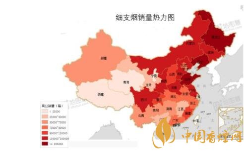 從熱力圖不難看出,中支煙消費同樣主要集中于東北、華北、華東和西南市場。如果與細支煙消費熱力圖對比不難發(fā)現(xiàn),兩者之間有著驚人的相似之處。
