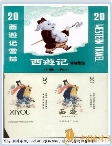 湖北利川卷煙廠出品的“西游記”套標中有一枚煙標以人格化的豬-豬八戒為主圖,該煙標上的豬八戒憨態(tài)可掬,惟妙惟肖,還有另一款豬八戒背媳婦,圖中豬八戒背著一名女子騰云駕霧,略偏頭向后嘴巴微張似正與女子攀談,女子手持蒲扇,一幅神態(tài)自若的樣子。