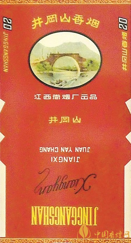 “井岡山”(上世紀50年代出品) 1958年,“井岡山”于江西南昌卷煙廠創(chuàng)牌。因誕生于中國革命的搖籃井岡山而得名。 煙標(biāo)設(shè)計最初以“紅軍會師橋”“黃洋界保衛(wèi)戰(zhàn)紀念碑”為元素,上世紀70年代以后以“井岡山五指峰”為主元素。 井岡山是中國革命的搖籃。那一時期留給后人最為寶貴的財富,就是跨越時空的井岡山精神,這一精神在煙標(biāo)中得到體現(xiàn)。