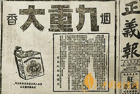 庾恩錫在昆明慶云街創(chuàng)建的云南首家機(jī)制卷煙廠——亞細(xì)亞煙草公司。1950年2月14日云南《正義報(bào)》上刊登的“大重九”上市廣告,從此,“大重九”的商標(biāo)設(shè)計(jì)保持了相對(duì)穩(wěn)定,經(jīng)典元素始終不變。