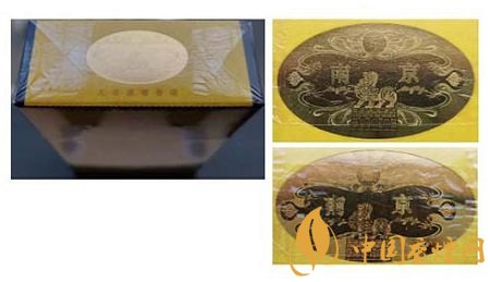 假冒卷煙:該款假冒卷煙南京字體邊緣金色輪廓線和筆畫內(nèi)無(wú)小圓點(diǎn),字體筆畫顏色暗淡,燙金套印有偏差。(上真下假)