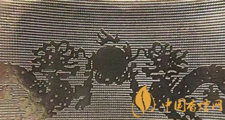 真煙小盒正面龍紋和松枝印刷清晰,色彩飽和度高,有立體感;假煙小盒正面龍紋和松枝印刷模糊,無(wú)立體感,且有粗糙圓形圖案。(上真下假)