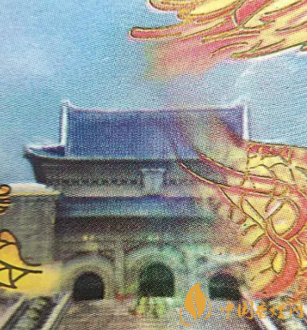 真煙小盒正面天空波浪紋、中山陵屋頂瓦片清晰連貫;假煙小盒正面天空波浪紋、中山陵屋頂瓦片模糊不清,時(shí)有時(shí)無(wú)。(上真下假)