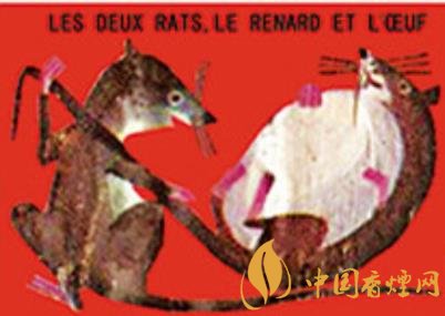 法國(guó)著名煙草經(jīng)銷(xiāo)機(jī)構(gòu)塞塔公司推出過(guò)系列伊索和拉封丹寓言卡通火花,其中的“鼠火花”內(nèi)容詼諧,十分有趣。《雙鼠、狐貍和雞蛋》(圖二)讓外界不要低估老鼠的智慧。狡猾的狐貍原本認(rèn)定老鼠搬不了雞蛋,不料兩個(gè)耗子狡黠協(xié)作,一個(gè)躺倒抱住雞蛋的同時(shí)直接讓伙伴拽拉著它的尾巴,彼此安然回洞!《老鼠和牡蠣》(圖三)是說(shuō)被誘惑和貪婪的后果很?chē)?yán)重:內(nèi)陸之鼠初到海邊,看到張殼做日光浴的牡蠣新奇不已,竟一頭伸進(jìn)殼中欲以秀色為餐,結(jié)果……即刻就要閉合的美艷景色不會(huì)免費(fèi)?。?/p>
