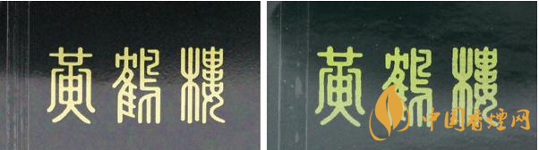 盒包側面“黃鶴樓”文字對比:真品卷煙字體清晰,文字邊緣呈規(guī)則鋸齒形。假煙文字粗糙,文字邊緣無鋸齒,有毛刺。