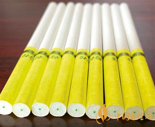 觀察煙支。真品煙支長度為97mm,接裝紙長度為36mm,嘴棒長度為30mm。接裝紙為黃綠色,帶燙金“荷花”字樣及整圈燙金花紋,使用專版小方格卷煙紙,內置加香亮鮮綠線醋酸濾棒,煙支端口平齊無毛茬。
