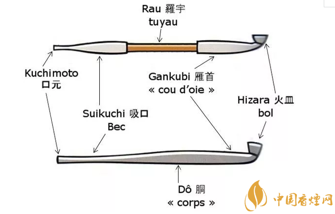 如圖所示日本煙管制作結(jié)構(gòu)就是有五部分組成的。