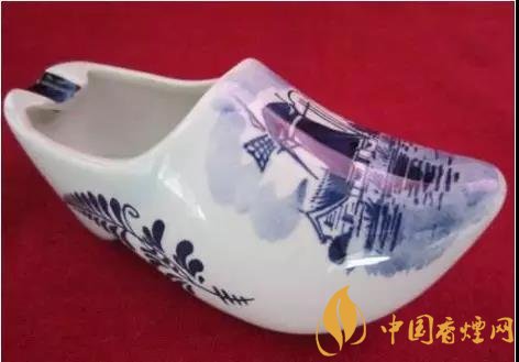 這款工藝煙灰缸是來自荷蘭的這款煙灰缸,呈尖頭木屐形,底色為白色,除少量文字與邊紋外,圖案皆以藍(lán)色繪之。這款高檔煙灰缸圖片鞋身左右前后都繪有對稱的三葉草圖案;鞋面繪有荷蘭風(fēng)車、村舍及水田灌木圖案;此外,鞋頭還用淡色繪以藍(lán)天白云,籠罩上空。而鞋口靠近鞋跟方向的邊沿處,設(shè)計(jì)了三個凹槽,方便多人吸煙時使用??偠灾?,是一款顏值與實(shí)用并存的煙灰缸無疑了。